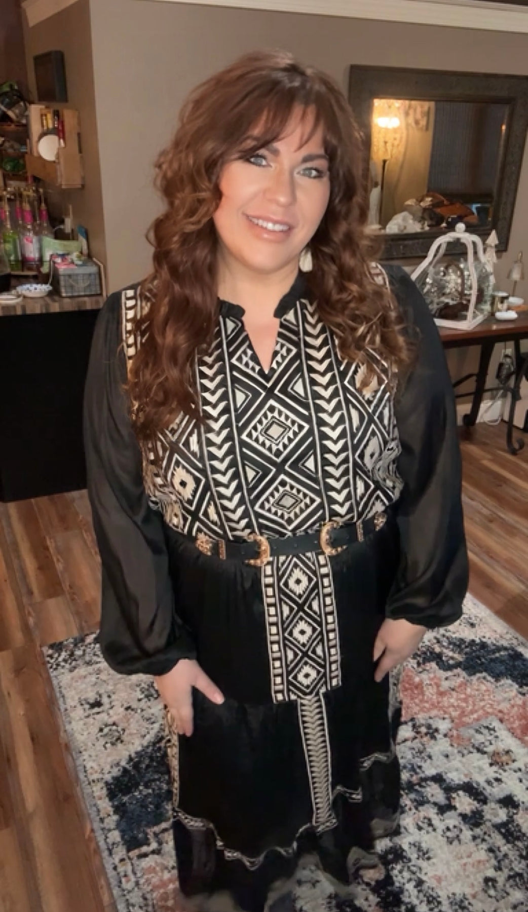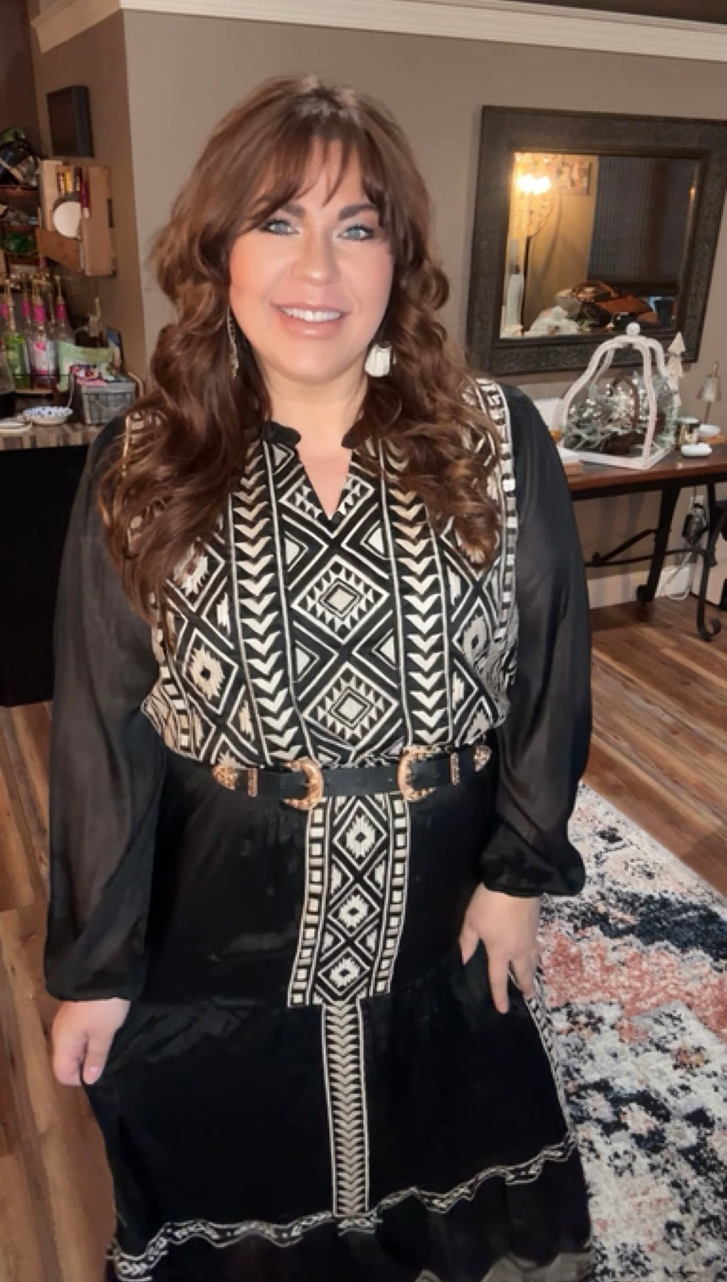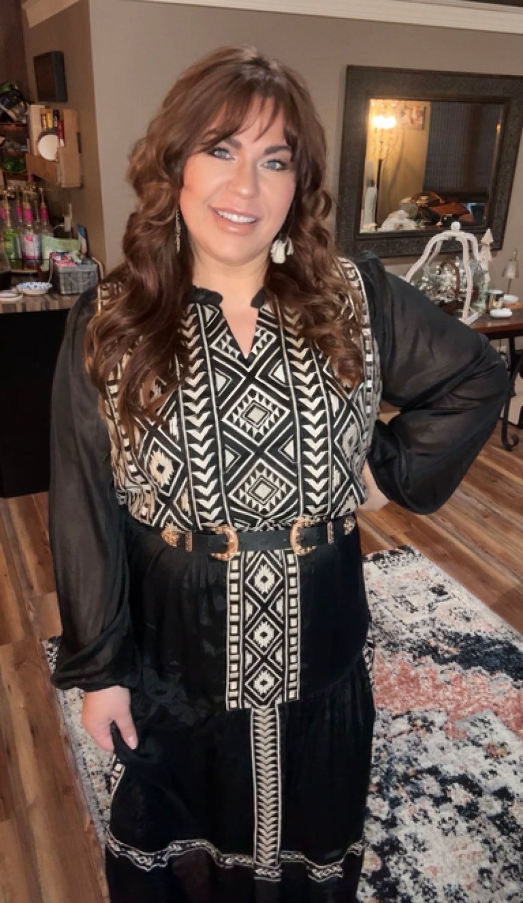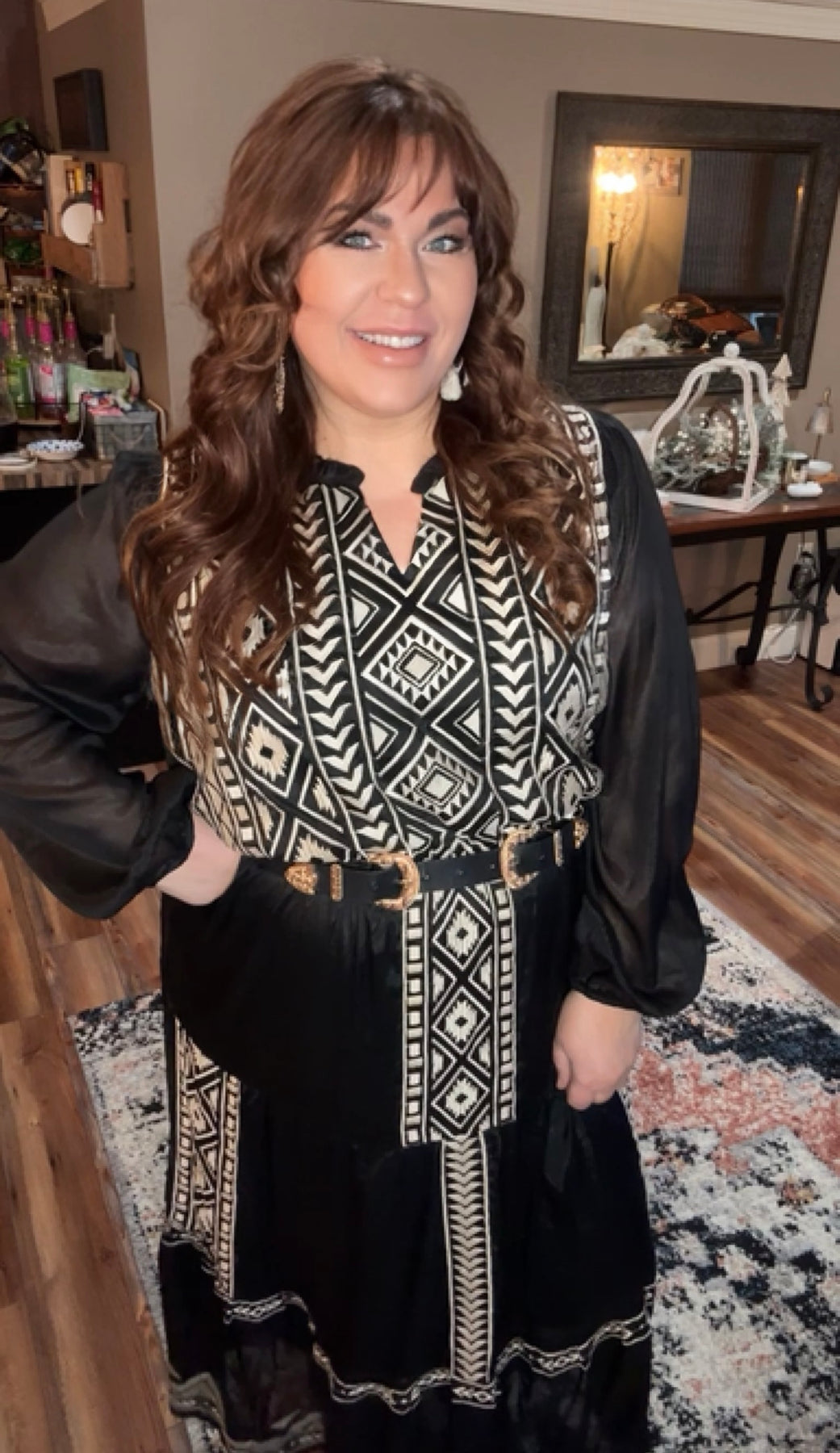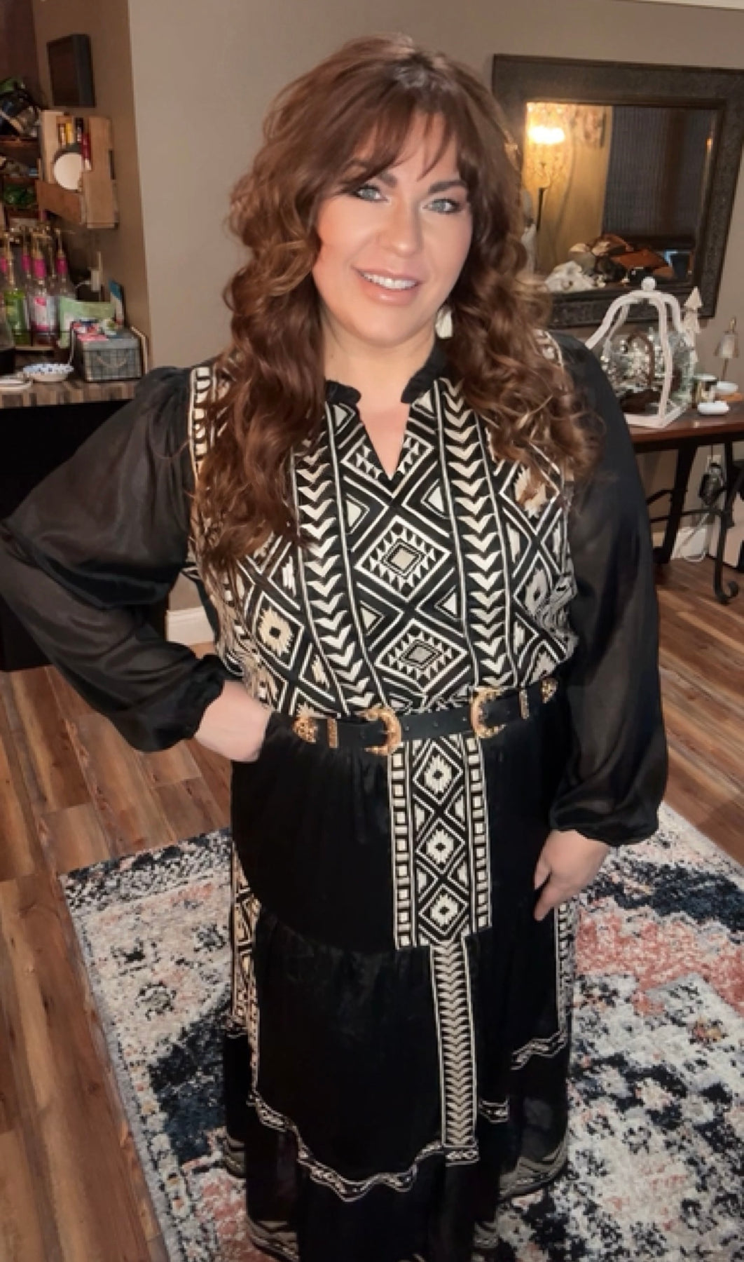 This black embroidery maxi tiered dress features elastic on the waistline with long sleeves. Lined, woven.