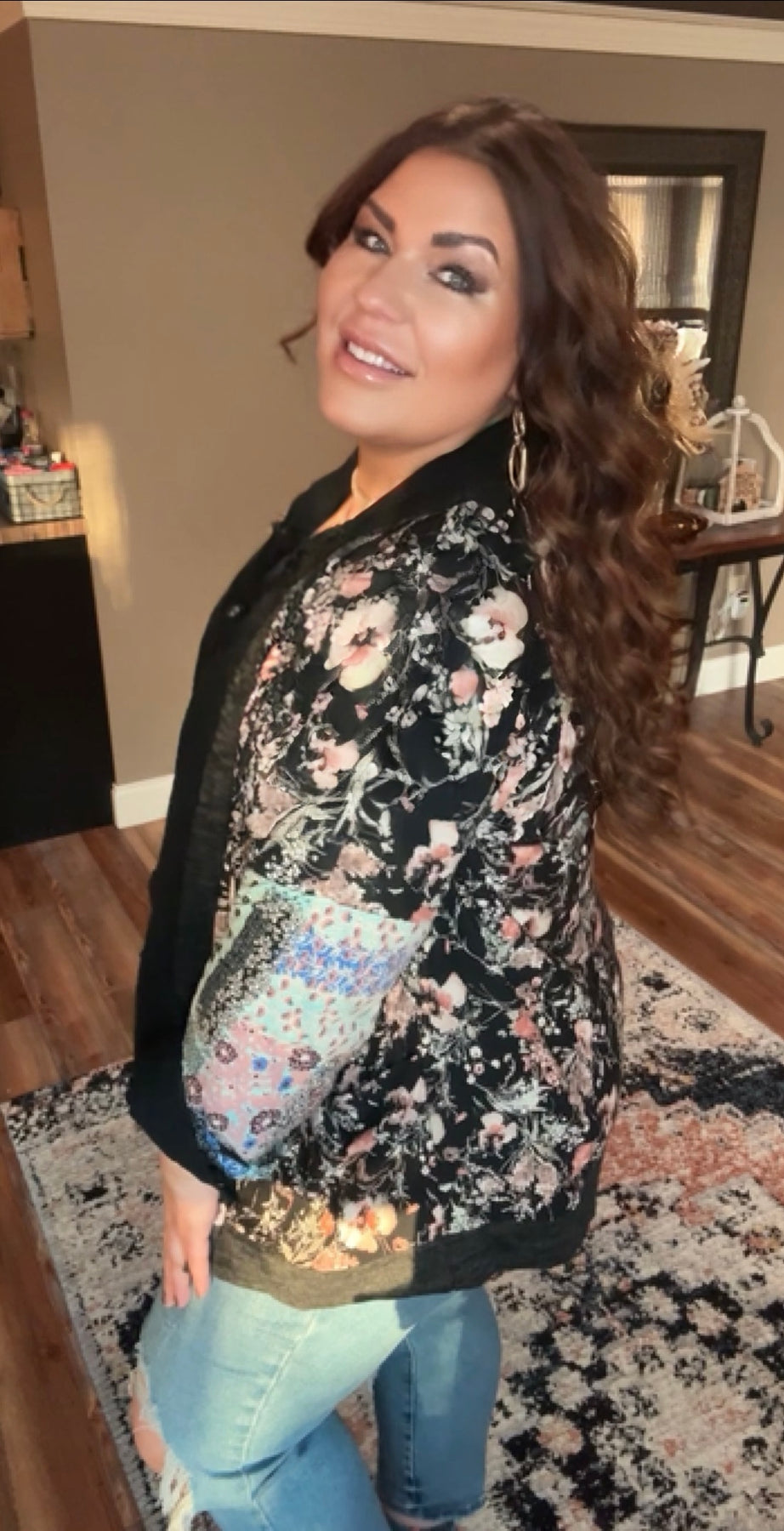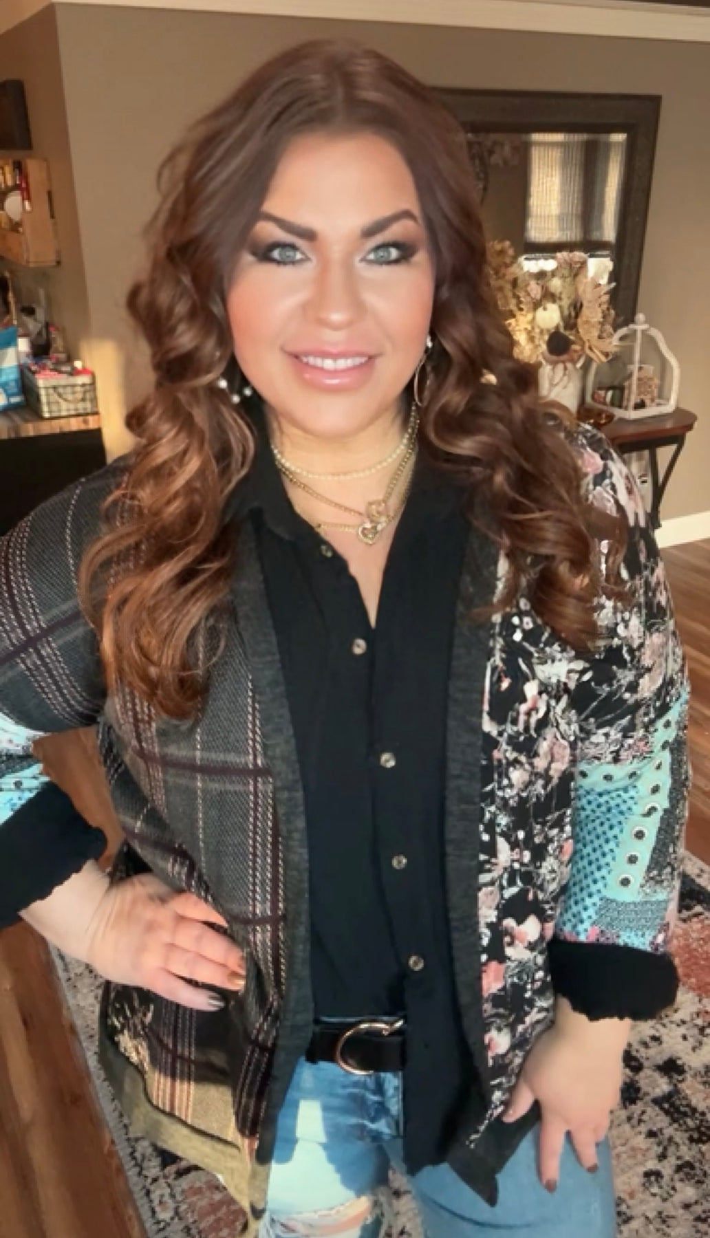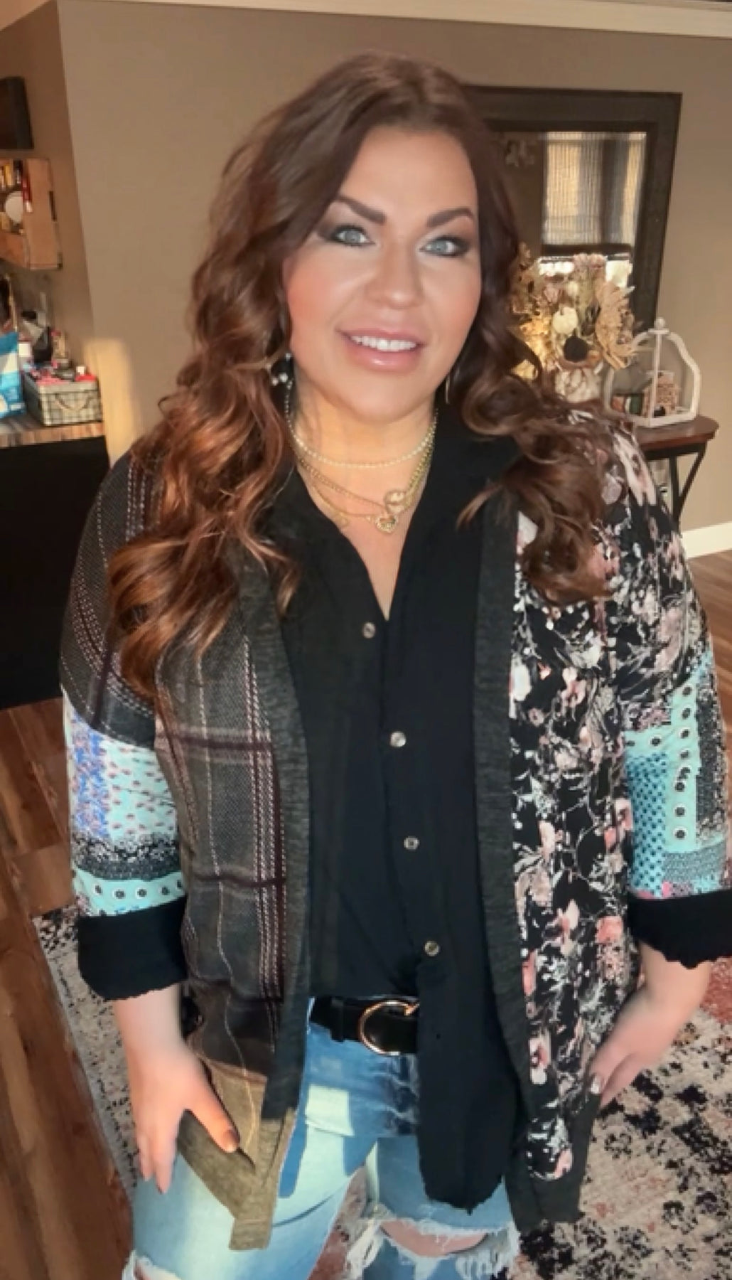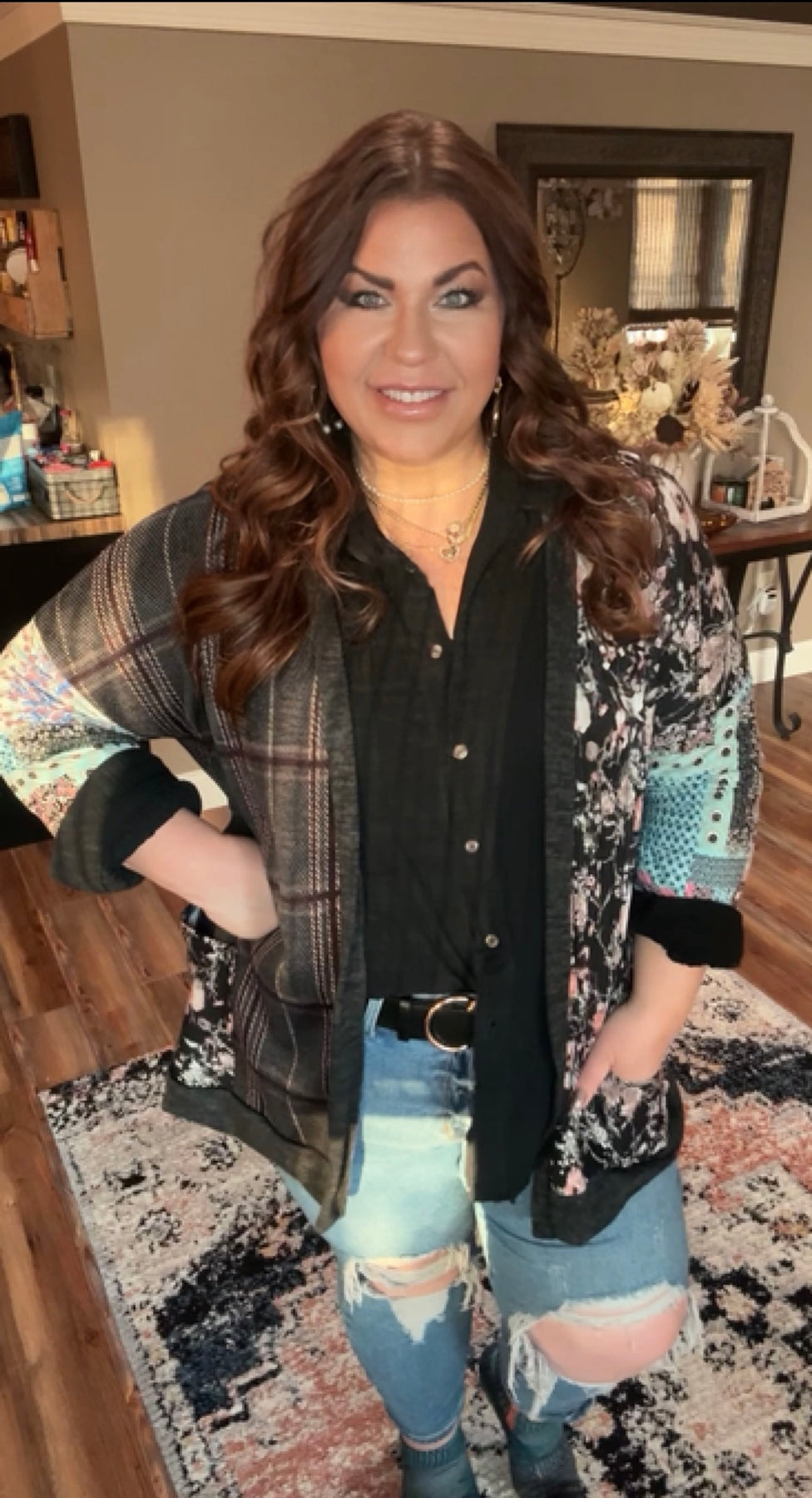 Blue & Pink Mix Fabric Open Cardigan Plaid fabric is thicker then the rest of the fabrics.